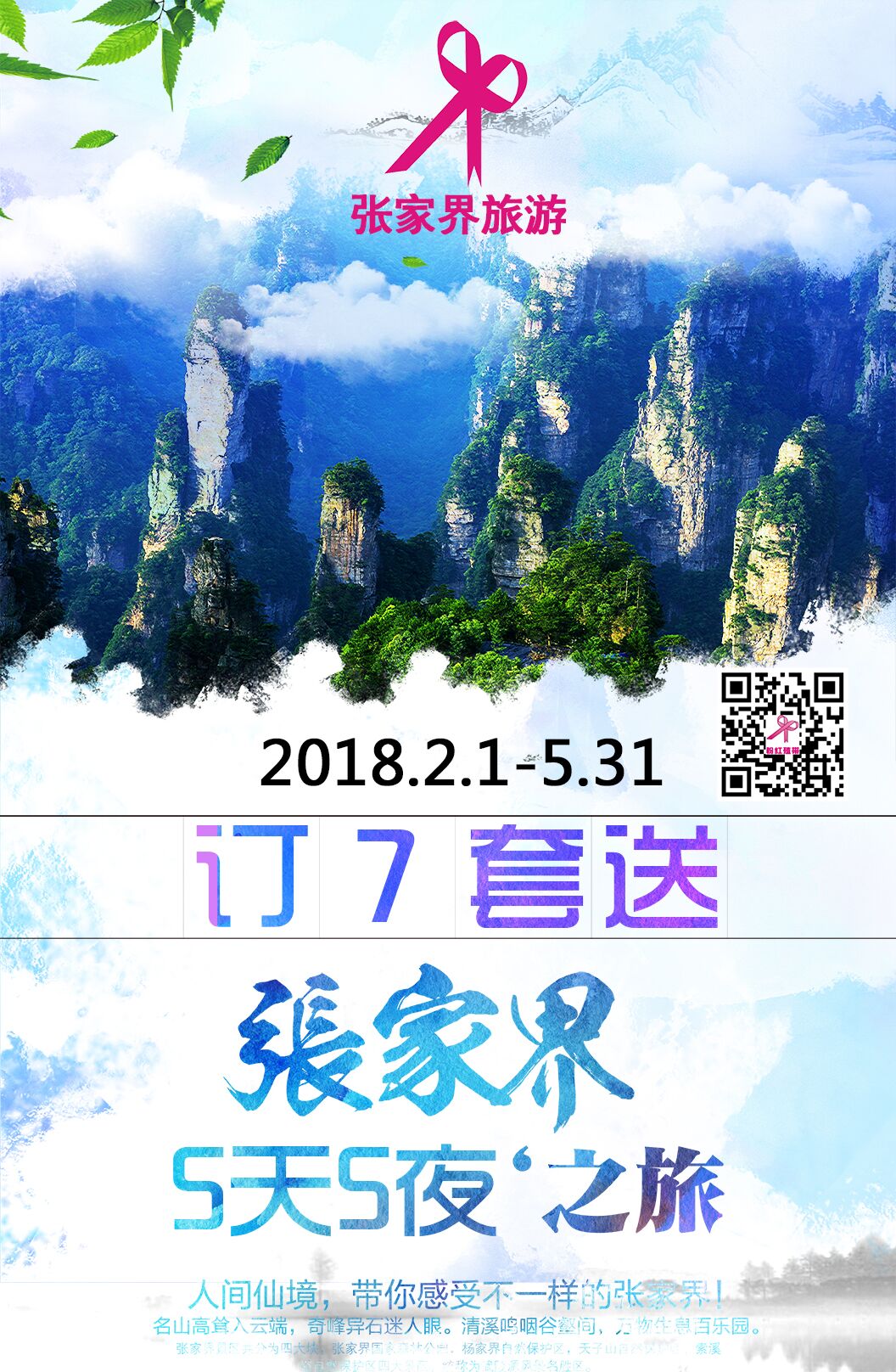 1、自购5单10000元【报3单,2单不计业绩】送张家界旅游