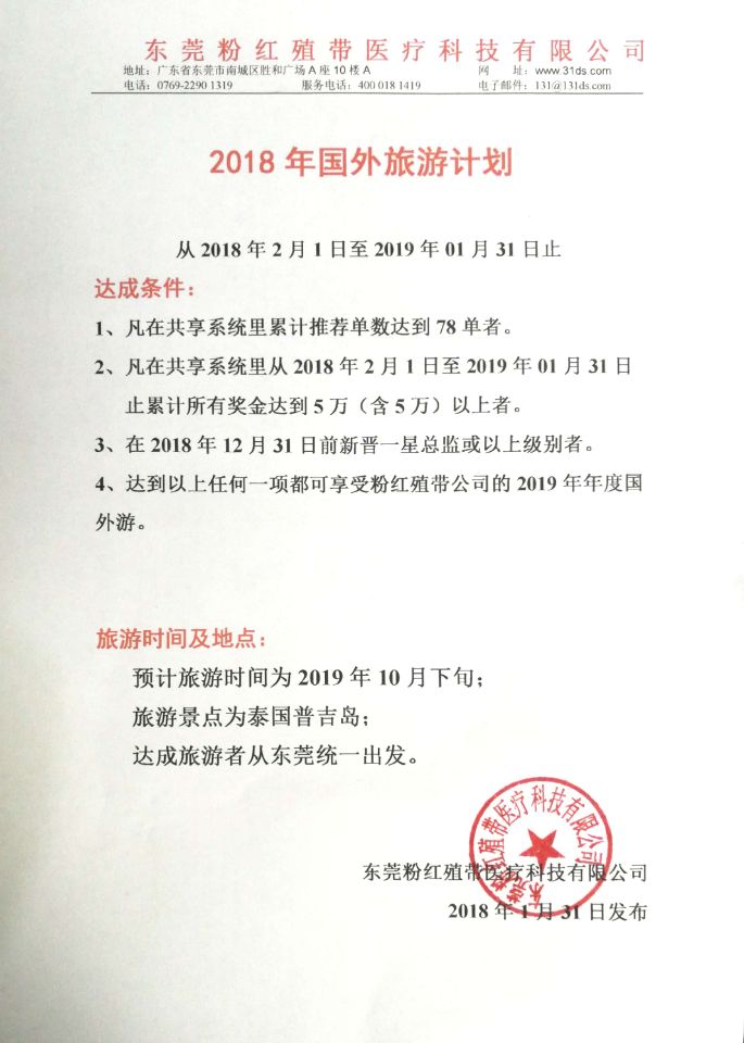 4、达到以上任何一项都可享受粉红殖带公司的2019年年度国外游。